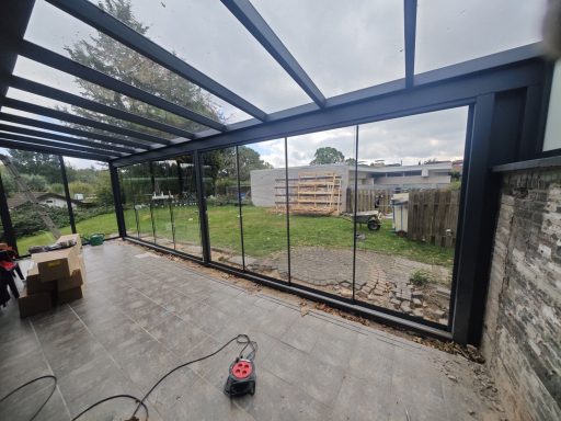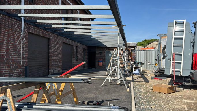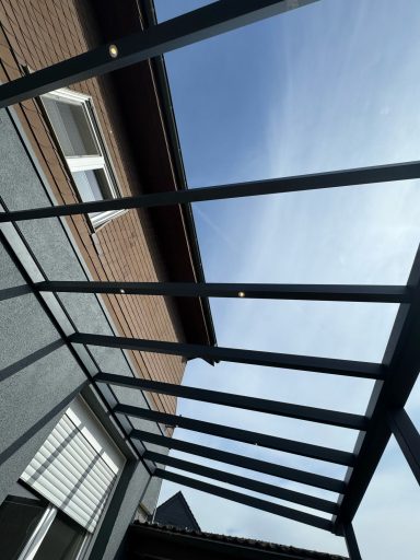 Unser Subunternehmer sorgt, für einen fachgerechten Aufbau, der Terrassenüberdachung.